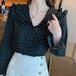 水玉Vネックシフォンシャツ T-116